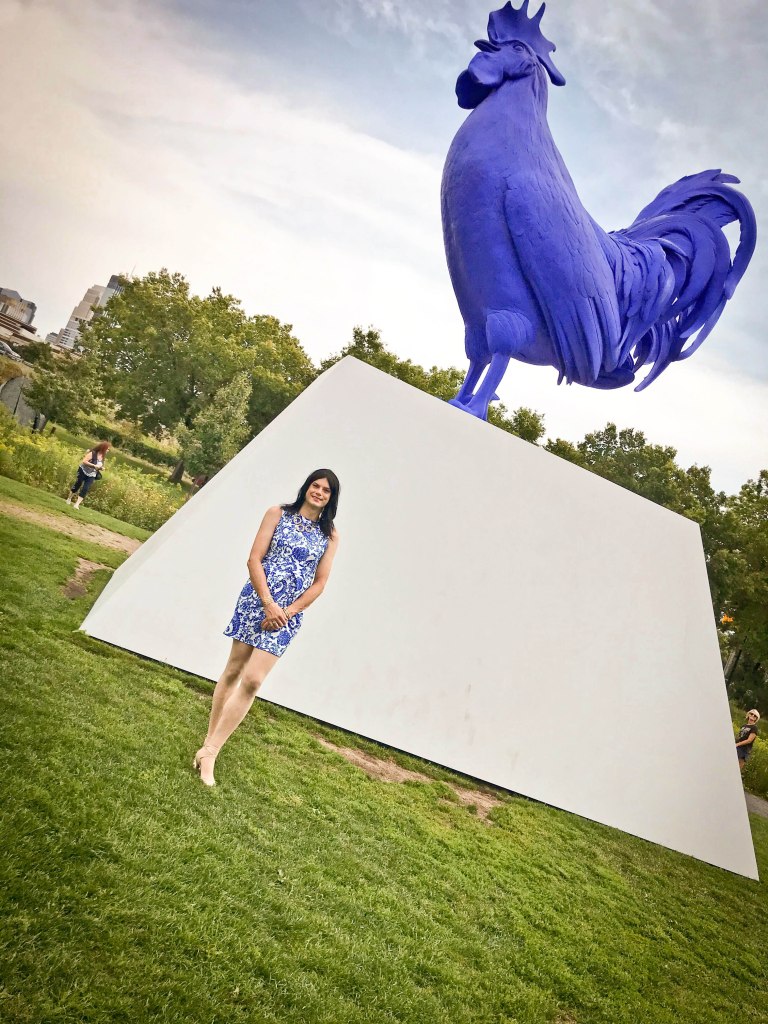 Pockets?! My wife has been known to complain about the lack of pockets on women’s clothing. I have noticed that myself. BTW – that blue rooster is about the dumbest thing in the Garden. However, it does match your dress, so I forgive it for a month or so.