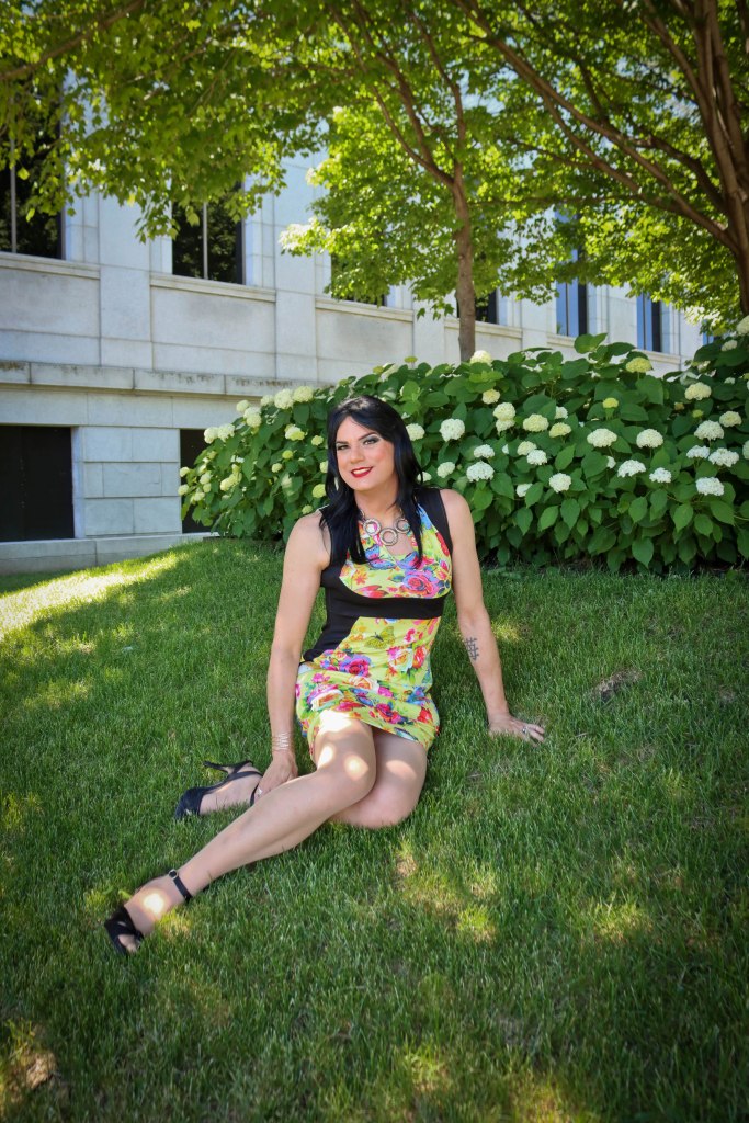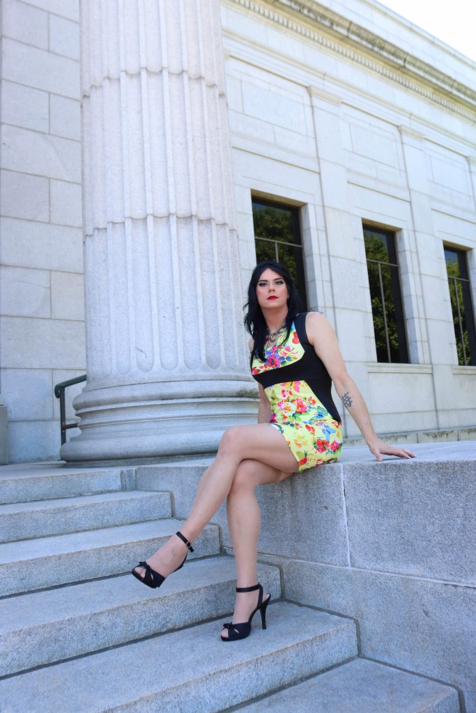 Of all the dresses I own, I think this is the one I have worn the most. I love the bodycon style, I think the cut and the fit is very flattering, especially when I wear my thigh pads. Add a tightly cinched corset and you can create a pretty amazing figure. The dress is colorful, cute, and just fun. I wore this dress when I visited a transformation studio in Saint Paul a few years ago and I loved how the photos turned out. Rebecca did an outstanding job with the pictures.