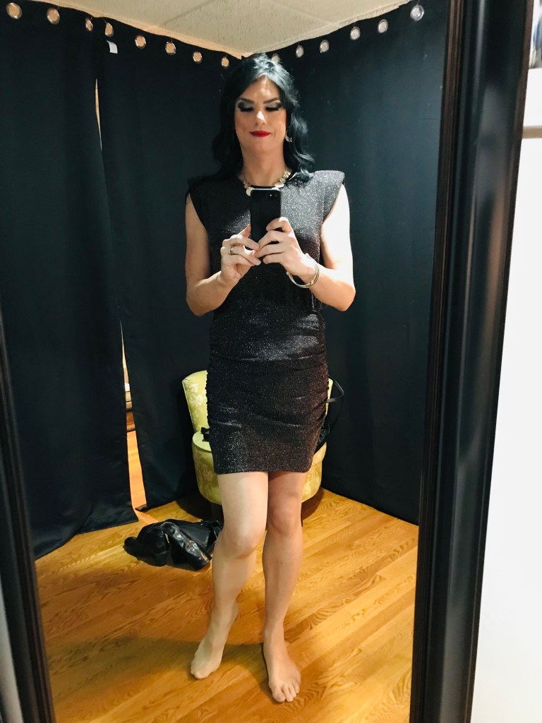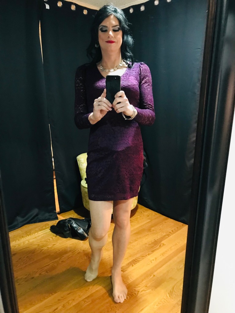 As a t-girl, I have a love/hate relationship with dresses that have sleeves. Sometimes the sleeves are too tight, sometimes there is not enough accommodation for my broad shoulders (which can lead to split seams), and sometimes the sleeves simply aren’t long enough. I wasn’t expecting to love this dress as much as I did because of the sleeves, but I am happy to say that I was pleasantly surprised with it. The dress also has a nice cut which compliments my bust without it being toooooo plungy. The dress is short which, if I am being honest, I have no issues with. 🙂 This cute dress is hanging in my closet and I’ll probably wear it on my next time out.