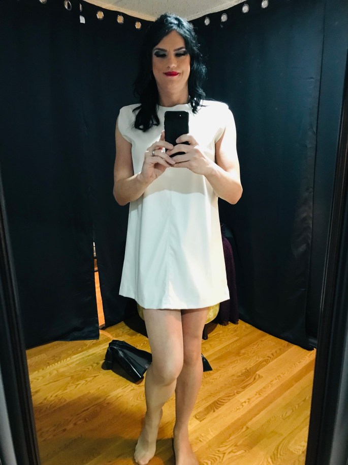 This particular dress was perfect in so many ways. It fit, which is obviously important. It was vegan leather(!), and it was white (I don’t have a lot of white dresses), and it was short. I like showing off my legs and there’s nothing wrong with that.
