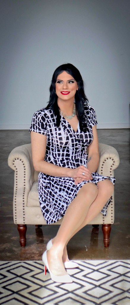 Dresses with sleeves rarely flatter my arms, regardless of the length. If a dress has long sleeves they usually only fall far below my wrist. Capped sleeves, such as this dress, tend to bunch up as many dresses aren’t designed for people with shoulders as broad as mine. These sleeves fell perfectly and are another reminder of how En Femme designs dresses for people with the body shape, size, and structure that many of us have.