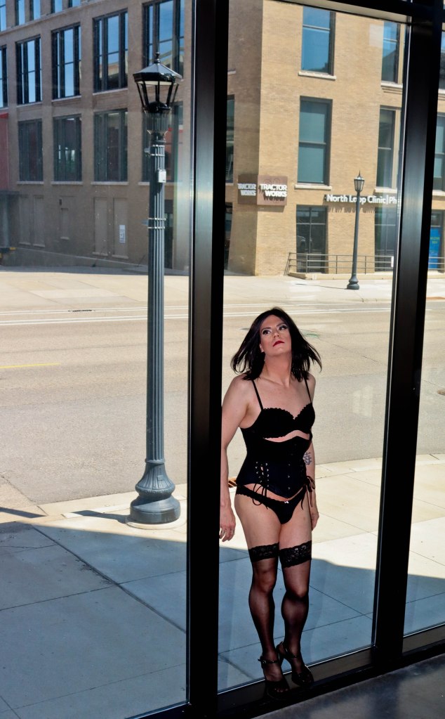At my last shoot I was just… vibing, you know? Just standing there in my stilettos and stockings while Shannonlee set up the shot. And soon I was standing in front of a window.