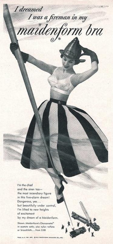 These ads showed very happy women doing random things from shopping to putting out fires all while wearing the above mentioned bra.