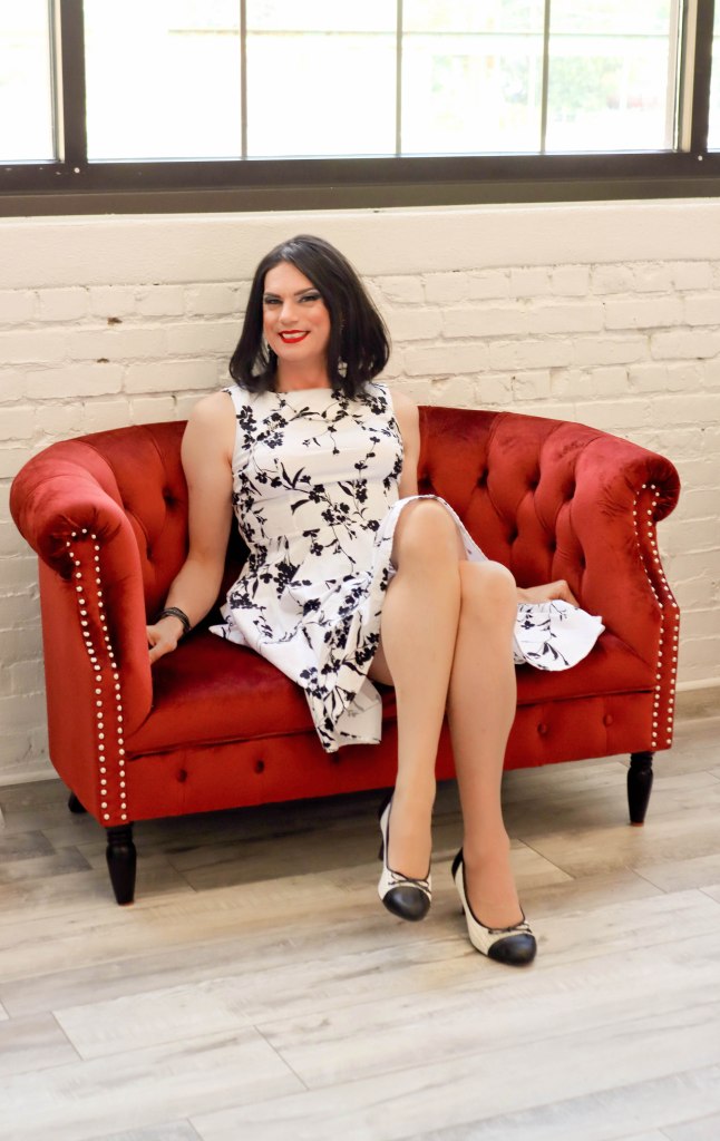 Your dress and heels do go well not just with each other but with the photo setting. Yes, they stand out in black and white, but they blend in so well with the surroundings. As for “wearing whatever you want wherever you want to,” that’s a good attitude; it’s certainly what I adhere to and what every crossdresser should in some way or form. Kudos to you, Hannah. 🙂