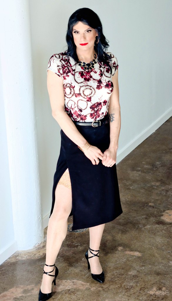Our femme presentation is more than just the outfit. It’s what we feel comfortable in, what we feel cute in, what we feel sexy in, what we feel confident in, and what we feel beautiful in. I have surprised myself by feeling cute in an outfit that, believe it or not, ISN’T a dress or a skirt.