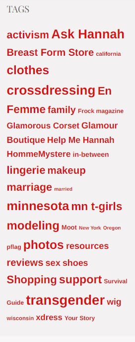 Find your niche and run with it. Mine was that gender identity is something to celebrate and is something beautiful. I was also very open on my website(s) when it came to where I lived. For topics that I write about often I will tag a key word, such as “lingerie” or “heels” or “Minnesota”. When I write about Minnesota I usually bring attention to an organization that I think girls like us would be interested in, or I write about legislation that can impact us, good or bad.