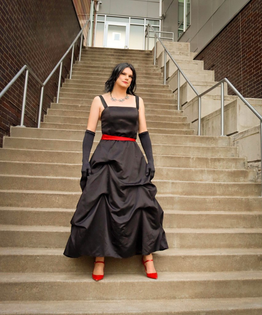 The gown was the last outfit I wore for last November’s MN T-Girls photo shoot. I also wore it to a play that night. I have never felt more beautiful. I had always dreamed of wearing this for an event, and a holiday play where everyone was dressed up was a perfect opportunity.